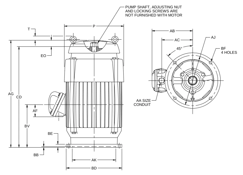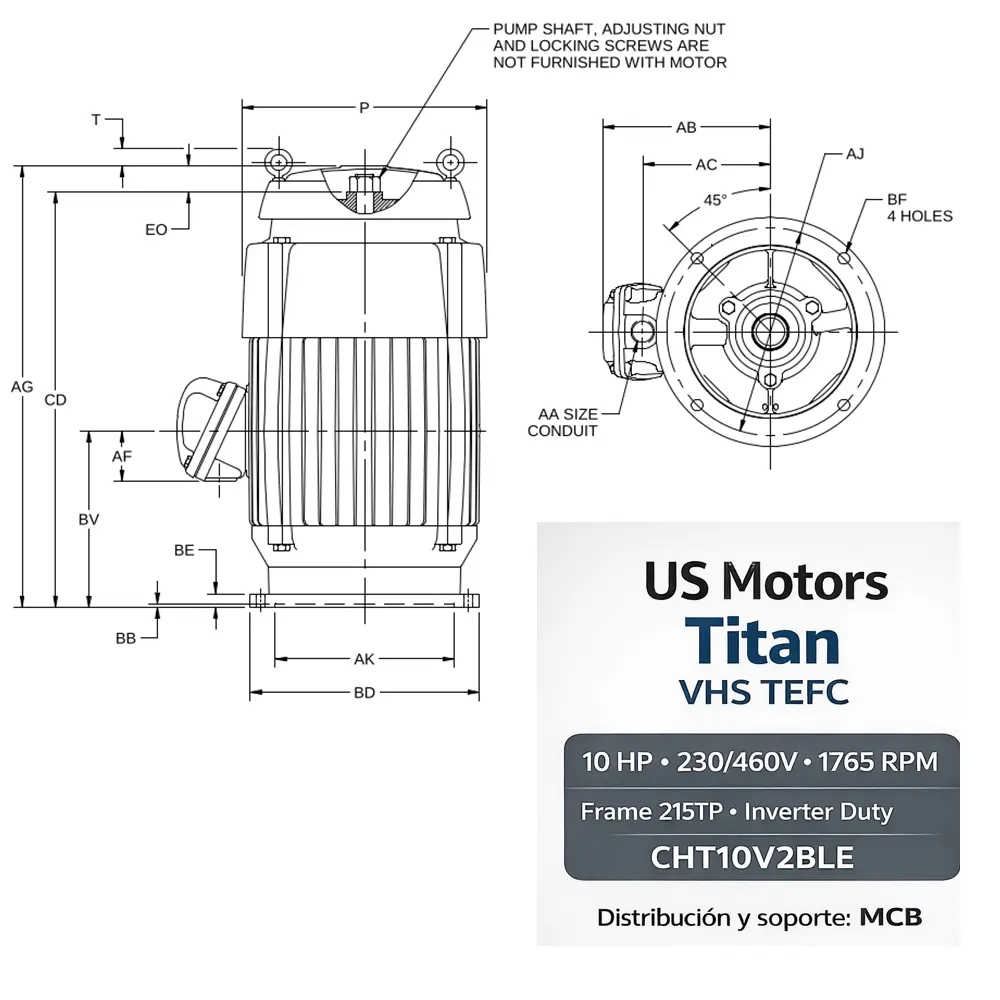 US MOTORS Titan VHS TEFC configurado para bomba centrífuga vertical (VHS) con empuje y accesorios para operación confiable. En MCB lo suministramos y validamos compatibilidad (base, acoplamiento, empuje y condiciones del sitio).